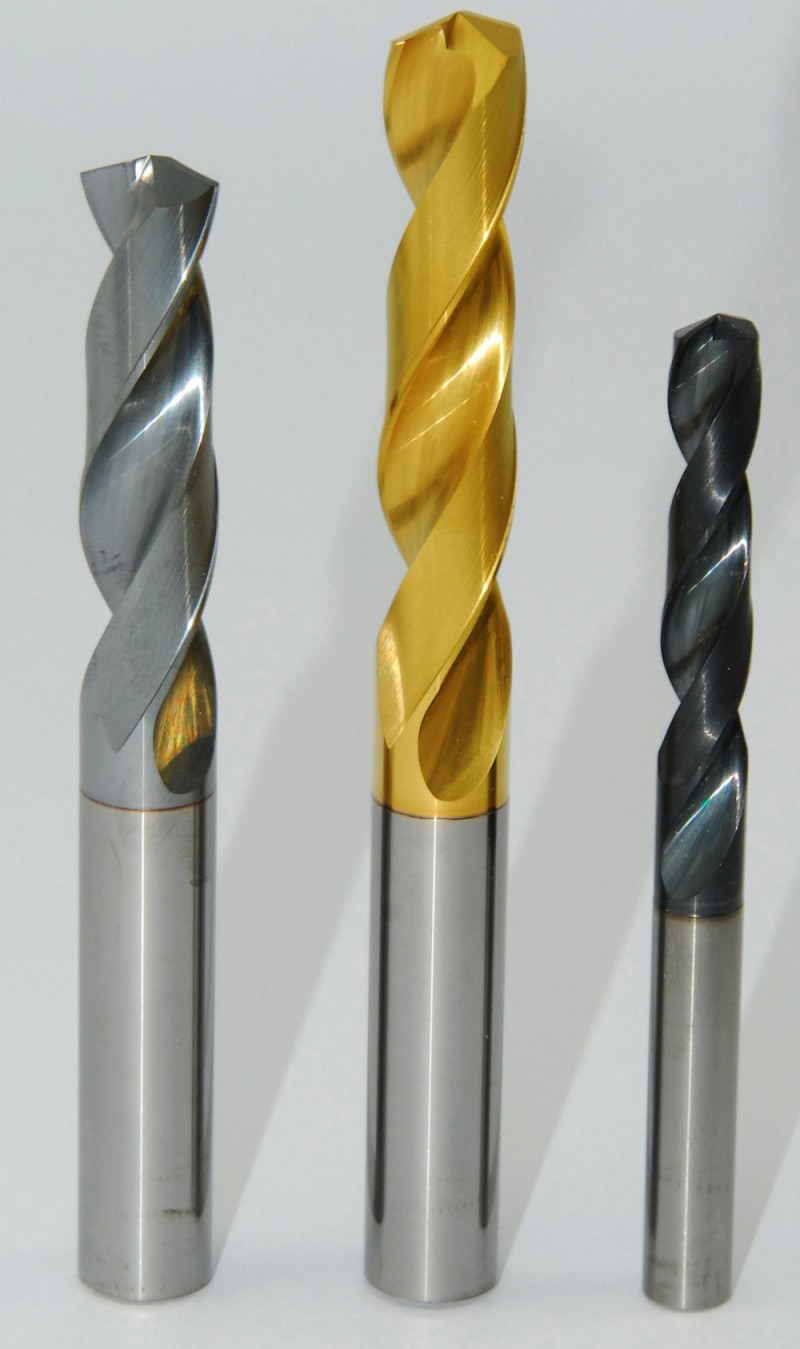 金是以碳化钨粉末为基体,以钴粉作粘结剂经加压、烧结而成。通常含碳化钨94%,含钴6%。由于其硬度很高,非常耐磨,有一定强度,适于高速切削。但韧性差,非常脆,为了改善硬质合金的性能,有的采用在碳化基体上化学汽相沉积一层5~7微米的特硬碳化钛(TIC)或氮化钛(TIN),使其具有更高的硬度。有的用离子注入技术,将钛、氮、和碳注入其基体一定的深度,不但提高了硬度和强度而且在钻头重磨时这些注入成份还能内迁。还有的用物理方法在钻头顶部生成一层金刚石膜,极大的提高了钻头的硬度与耐磨性。硬质合金的硬度与强度,不仅和碳化钨与钴的配比有关,也与粉末的颗粒有关。超微细颗粒的硬质合金钻头,其碳化钨相晶粒的平均尺寸在1微米以下。这种钻头,不仅硬度高而且抗压和抗弯强度都提高了。为了节省成本现在许多钻头采用焊接柄结构,原来的钻头为整体都是硬质合金,现在后部的钻柄采用了不锈钢,成本大大下降但是由于采用不同的材质其动态的同心度不及整体硬质合金钻头,特别在小直径方面。