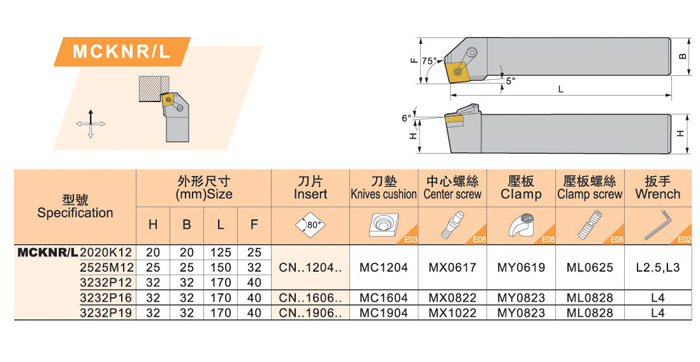 MCKNR2525M12,MCKNL2525M12,MCKNR3232P12,MCKNL3232P12,MCKNR3232P19,MCKNL3232P19,MCFNR2525M12,
