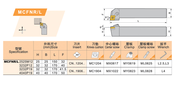 MCKNR2525M12,MCKNL2525M12,MCKNR3232P12,MCKNL3232P12,MCKNR3232P19,MCKNL3232P19,MCFNR2525M12,