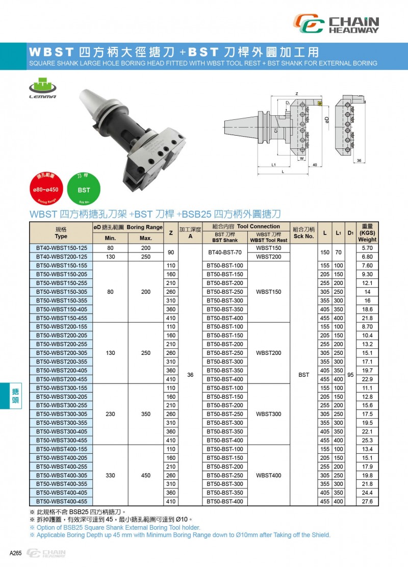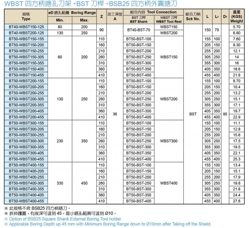 WBST 四方柄大徑搪刀+BST 刀桿外圓加工用