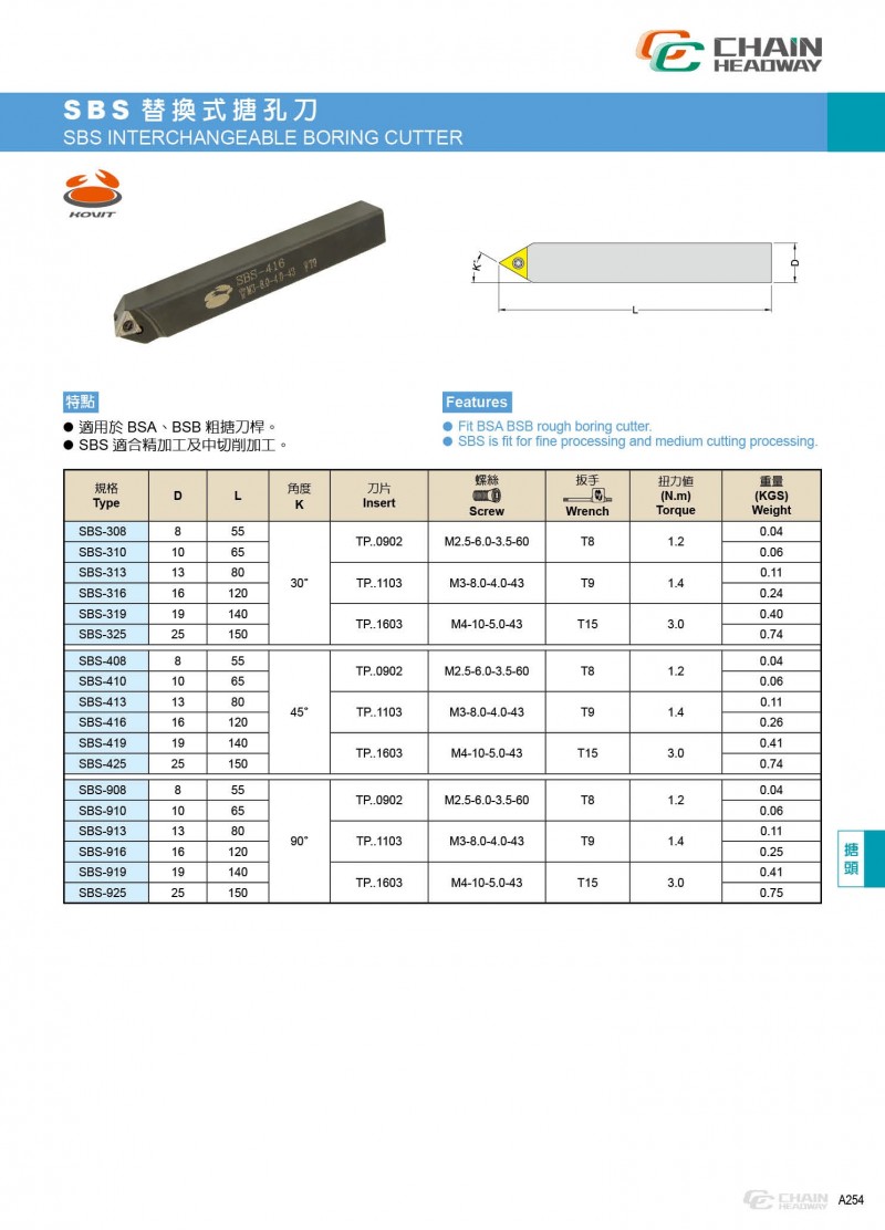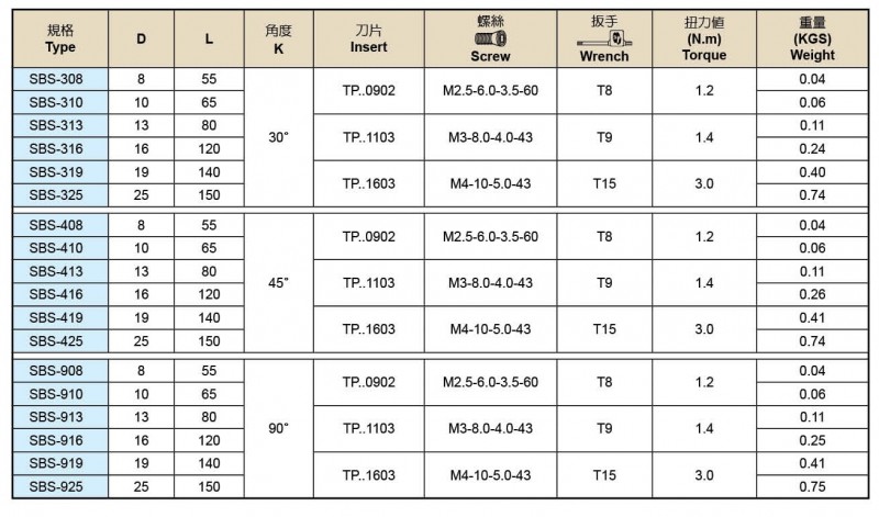 ● SBS 適合精加工及中切削加工。