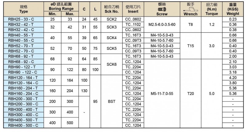 RBH 可調式雙刃粗搪孔頭