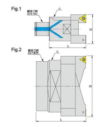 ● 連接壓板使刀頭與刀座一體,增加切削剛性。