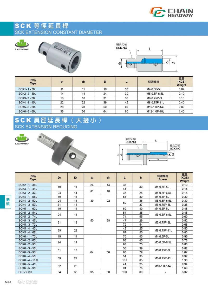 碳化鎢刀桿專用異徑 SCK 延長桿(小接大)