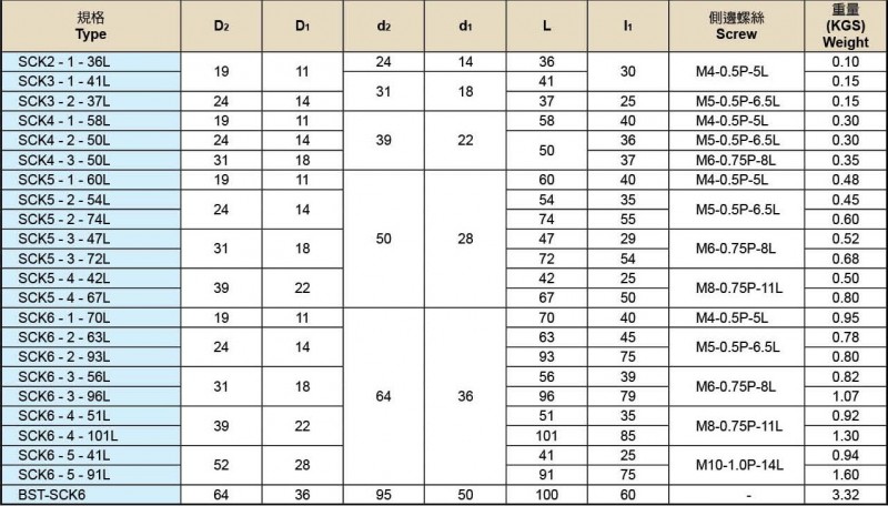 碳化鎢刀桿專用異徑 SCK 延長桿(小接大)