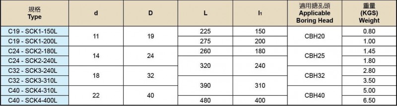 SCK 直柄碳化鎢製搪孔頭刀桿