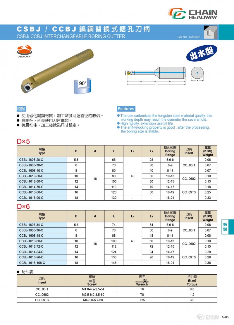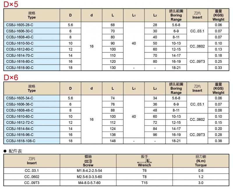CSBJ/CCBJ 鎢鋼替換式搪孔刀柄