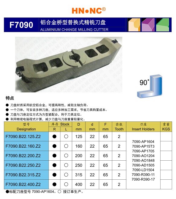 铝合金桥型替换式微调精铣刀盘F7090.B27.200.Z2