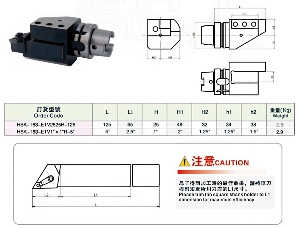 HSK-T63-ETV2525R-125轴向外径车刀座