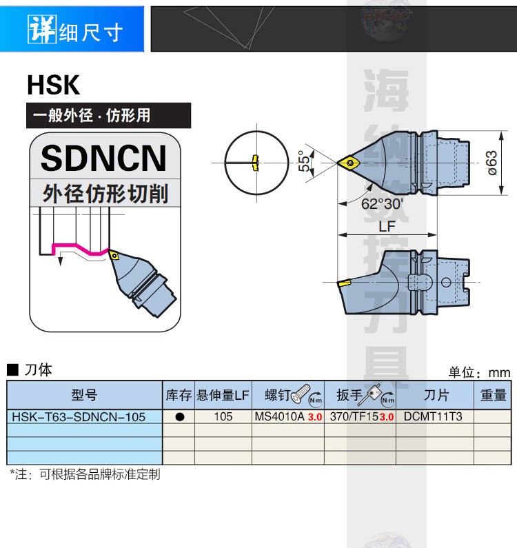 HSK-T63-SDNCN-105整体式车铣复合专用外径车刀座