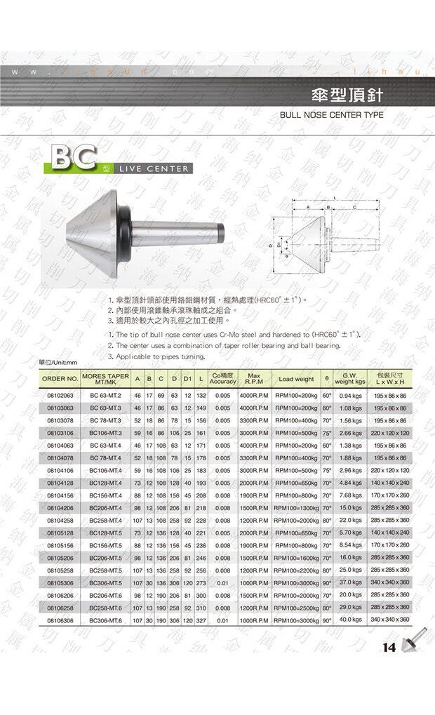 台湾丽勳LI-LHUN伞形活络顶尖BC-MT伞形回转顶针