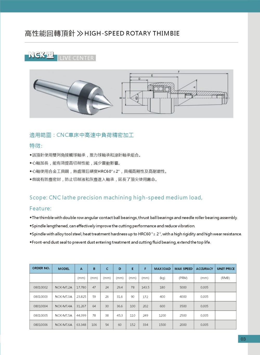 和舜NCK-MT加长高速精密回转顶针