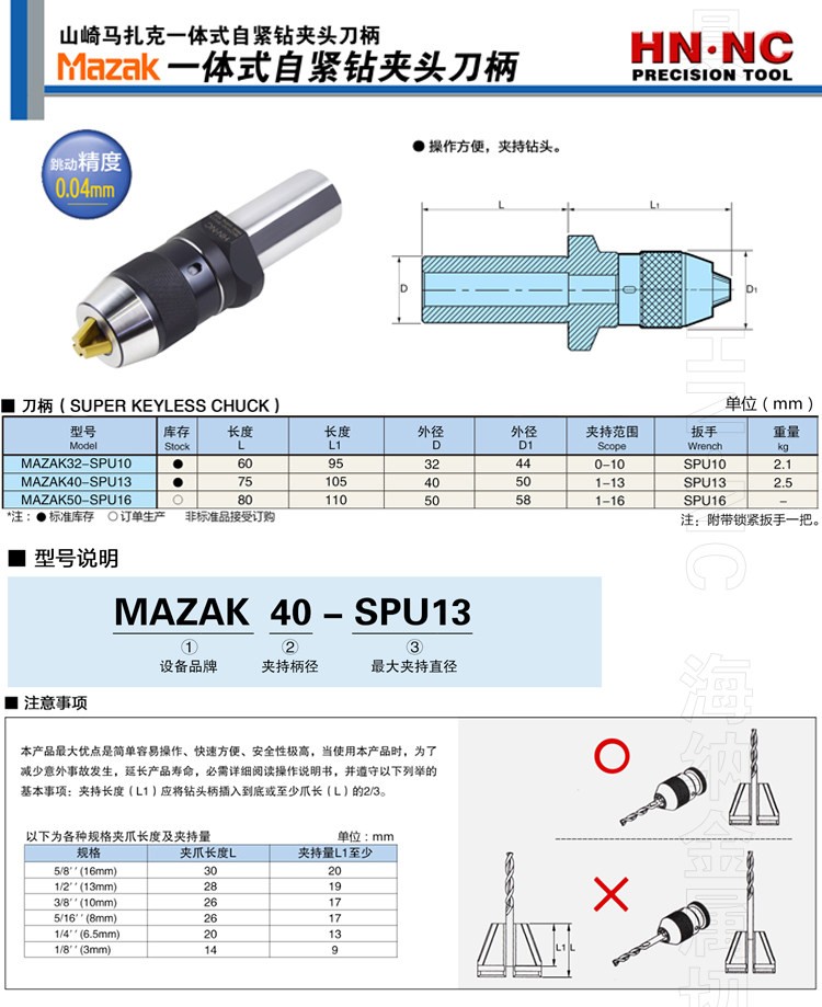马扎克MAZAK-40-SPU13一体式自紧钻夹头刀柄