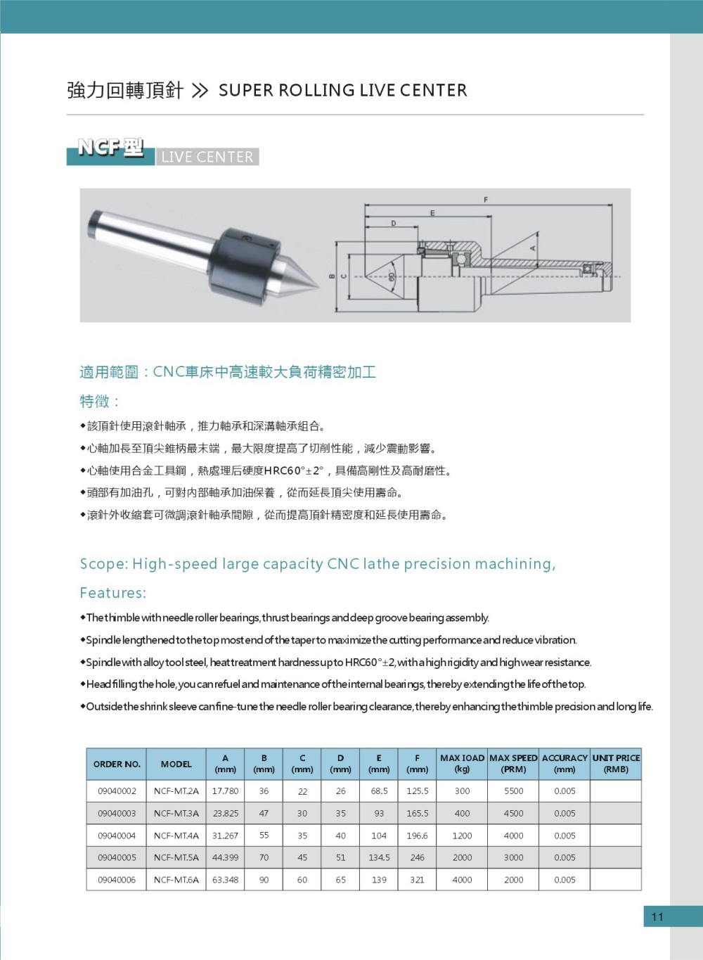 和舜NCP-MT高速加长型精密回转顶针