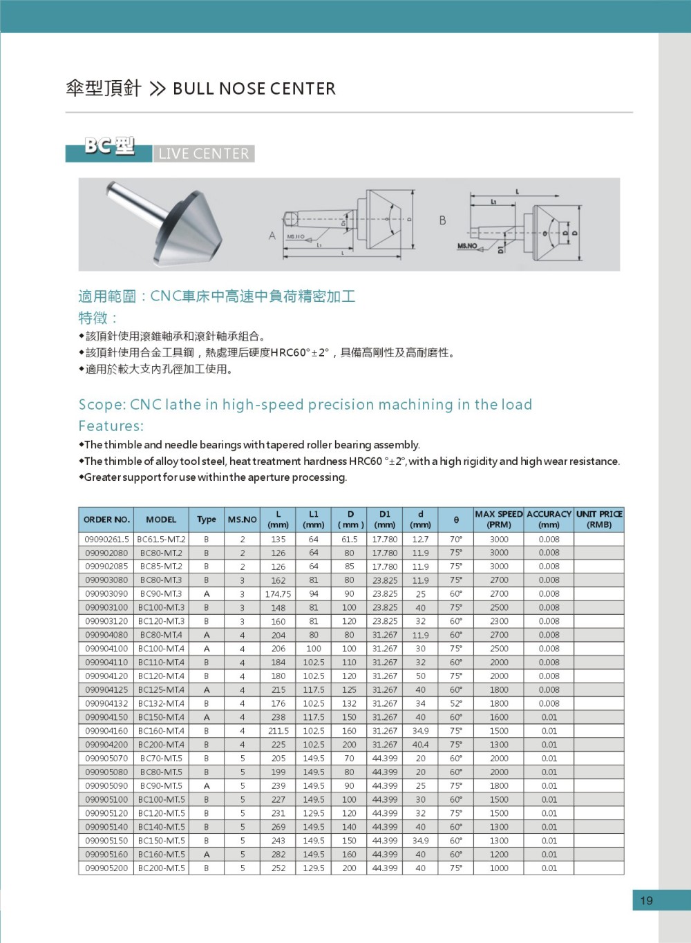 和舜NCK-MT加长高速精密回转顶针