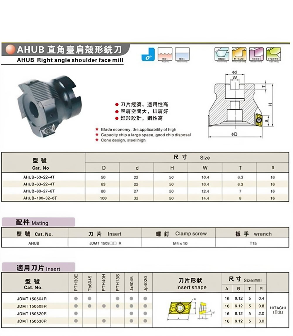 AHUB舍弃式直角方肩面铣刀盘