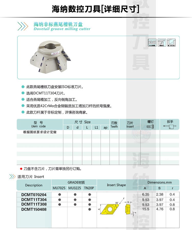 非标定制DCWR燕尾槽倒角铣刀盘