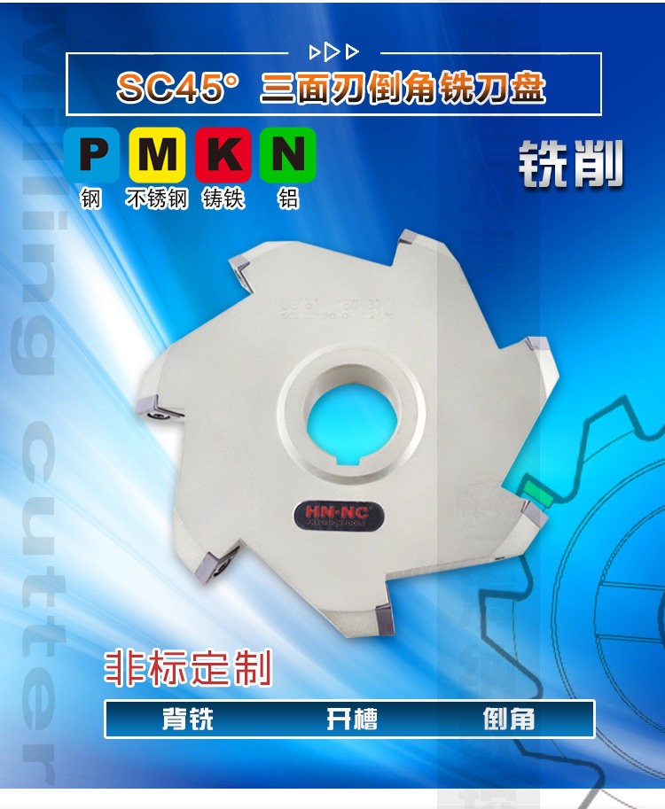 非标定制SC45 45度可转位V型槽三面刃倒角切槽铣刀盘