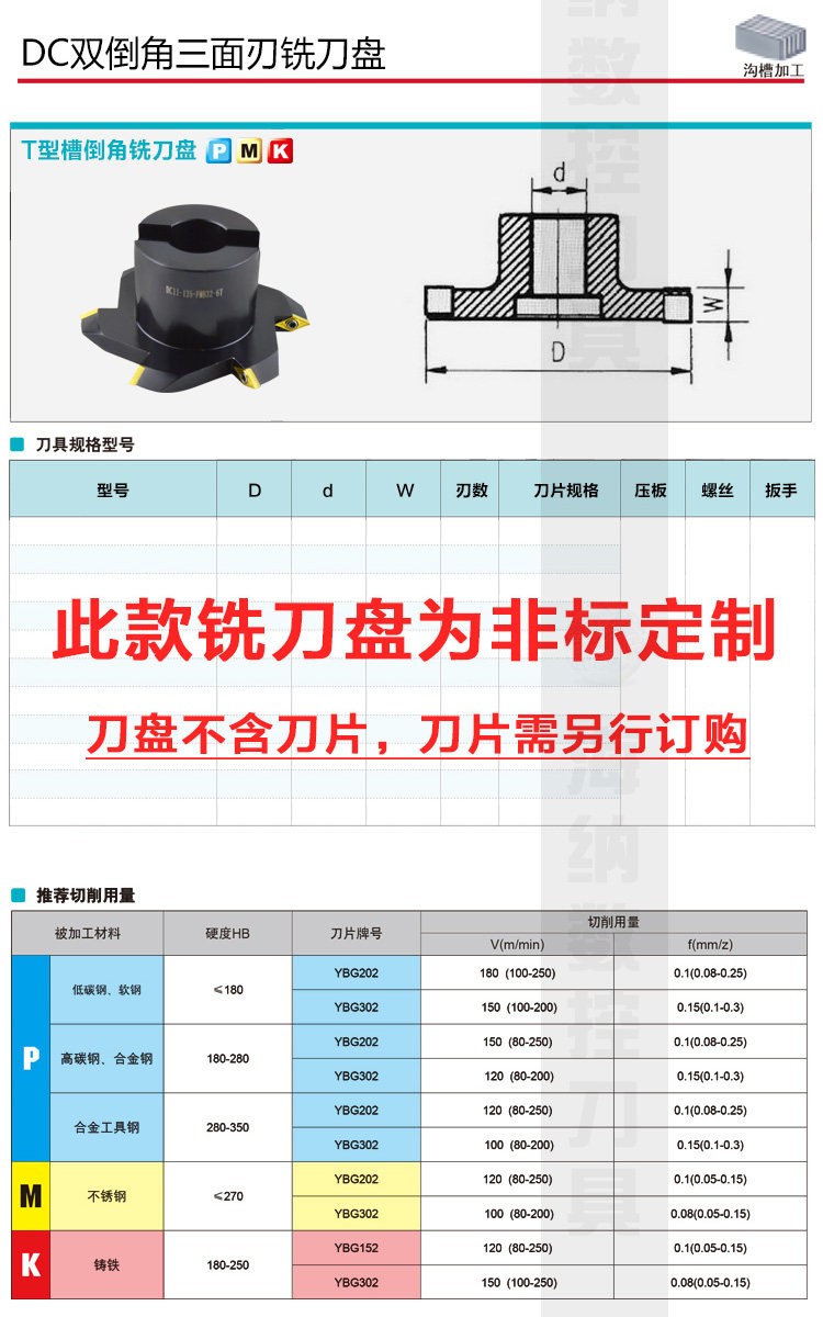非标定制DC11 55度内外倒角可转位三面刃铣刀盘