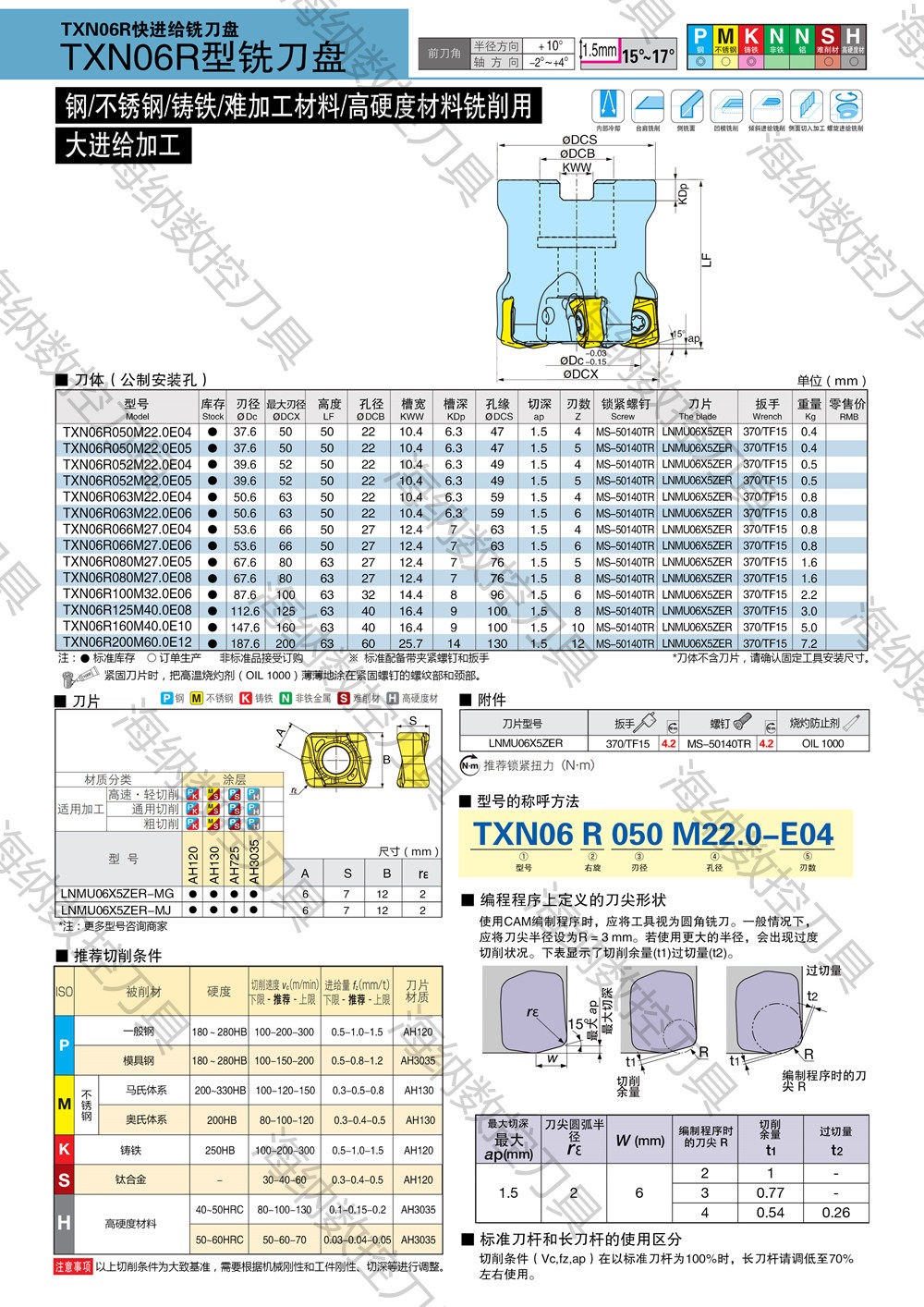 非标定制TXN06R高速快进给铣刀盘
