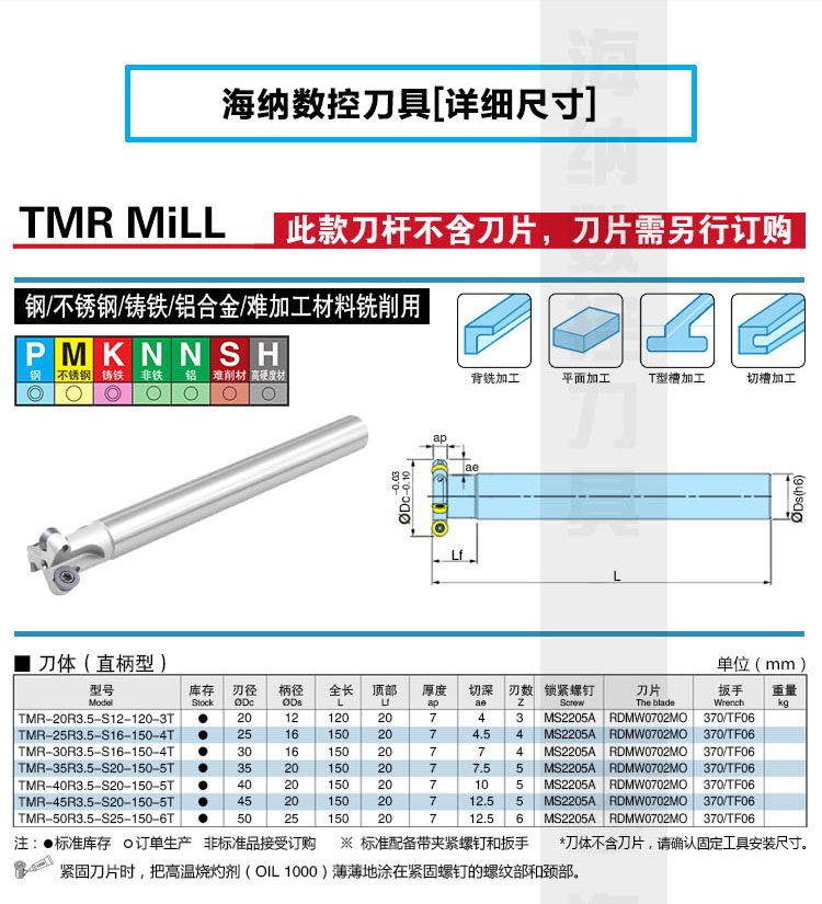 TMR-R3.5三面刃T型槽开槽数控铣刀杆