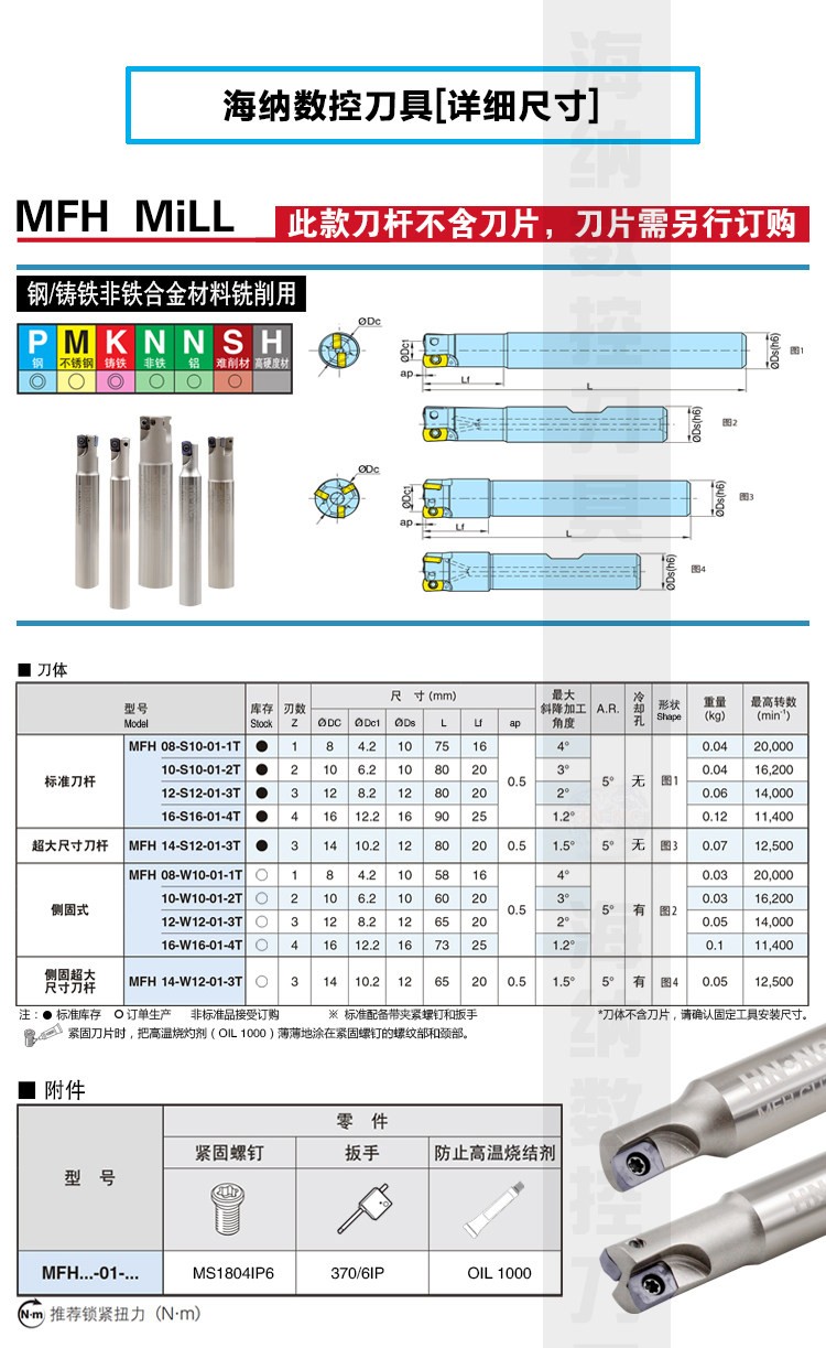 MFH 极小径高进给铣刀杆