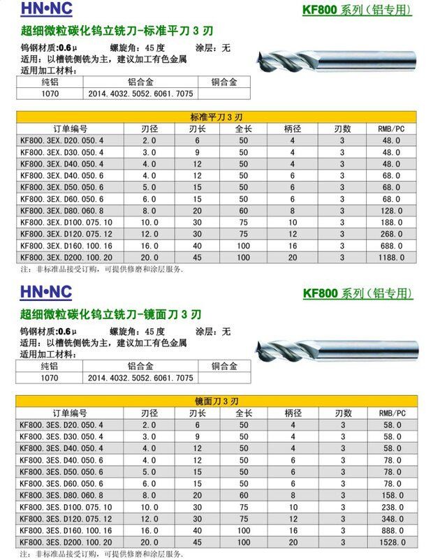 KF800超强高速铝合金专用超微粒钨钢立铣刀合金立铣刀3刃