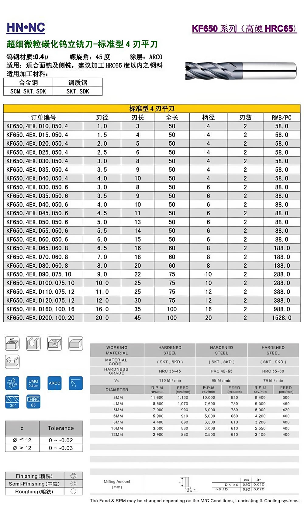 KF650高硬度4刃超微粒钨钢立铣刀数控CNC涂层合金立铣刀