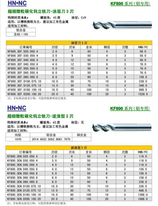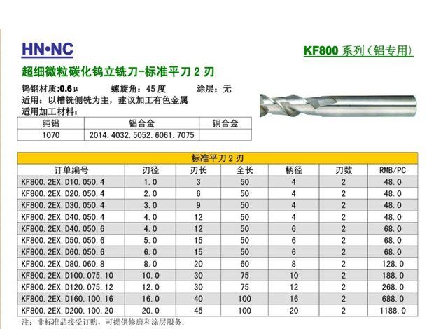 KF800超强高速铝合金专用超微粒钨钢立铣刀合金
