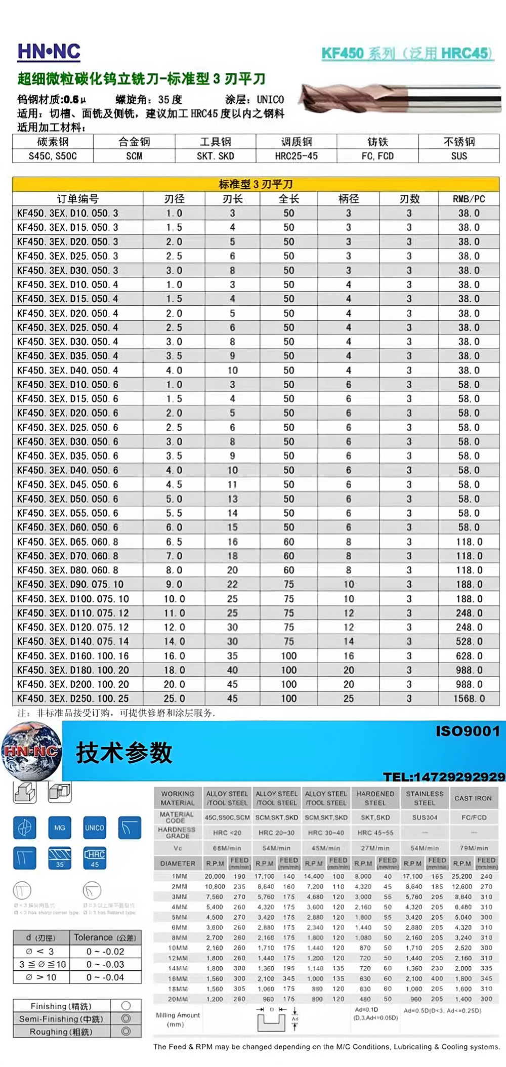 KF450泛用3刃超微粒钨钢立铣刀整体硬质合金涂层立铣刀