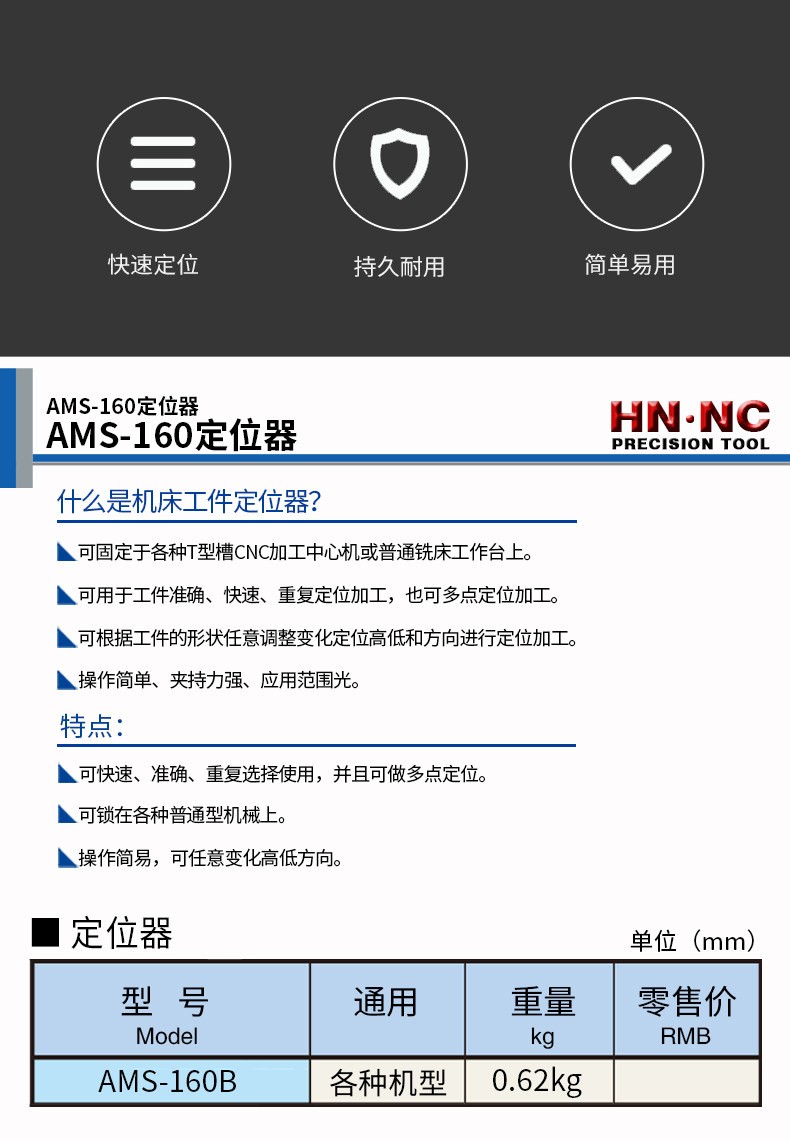 AMS-160B工件定位器虎钳工作定位器铣床加工中心平口钳定位件