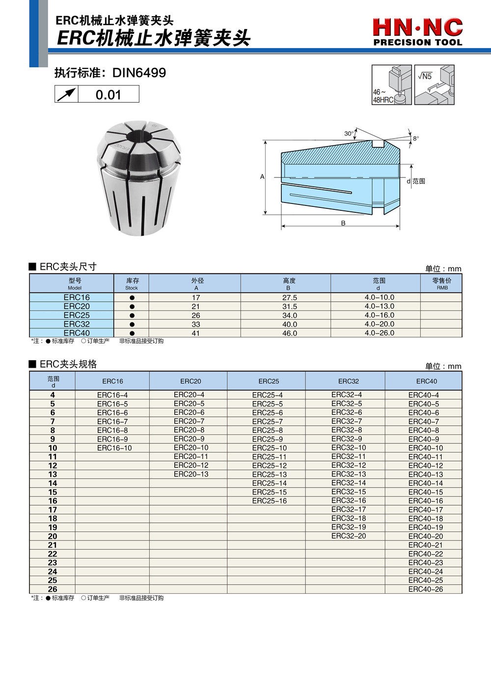 ERC32胶条密封止水内冷弹簧夹头端面出水弹簧筒夹