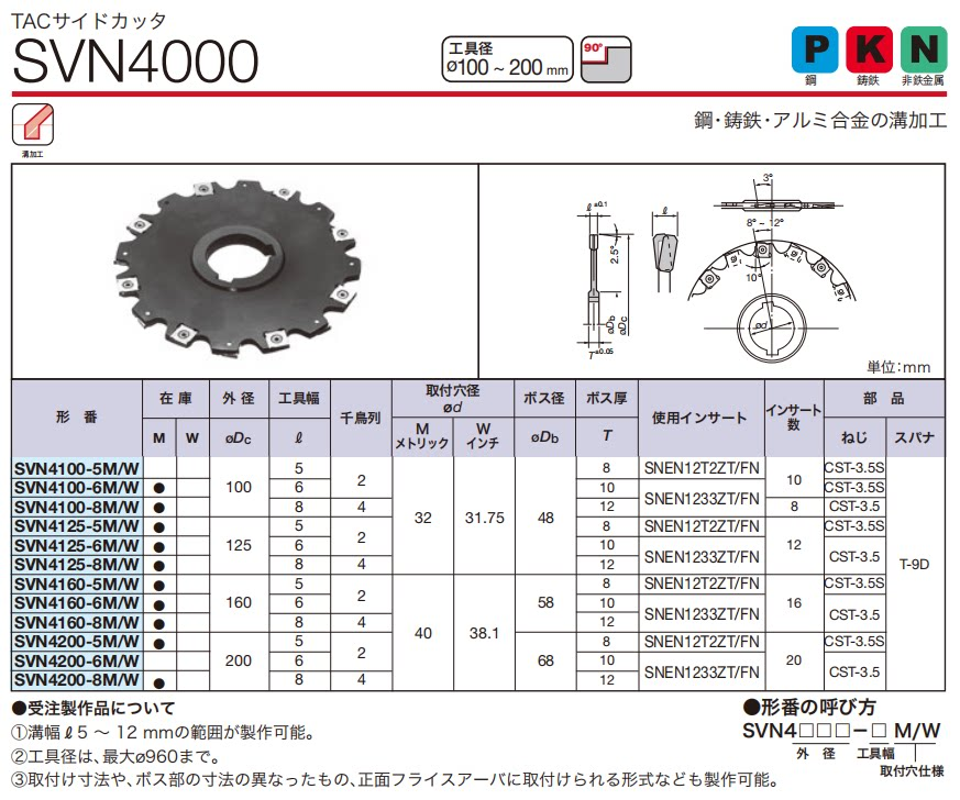 SVN4000三面刃切槽铣刀盘SNEN12数控刀片