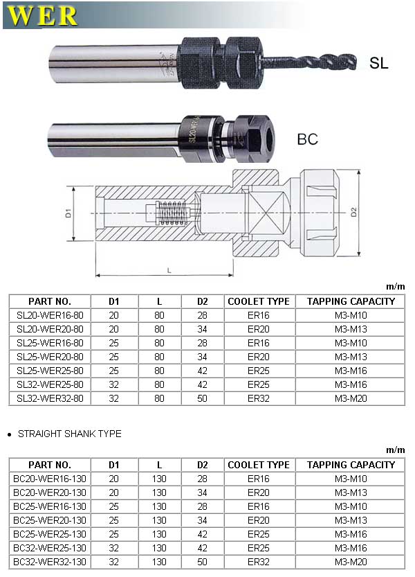 SL25-WER25-80直柄伸缩攻牙刀柄