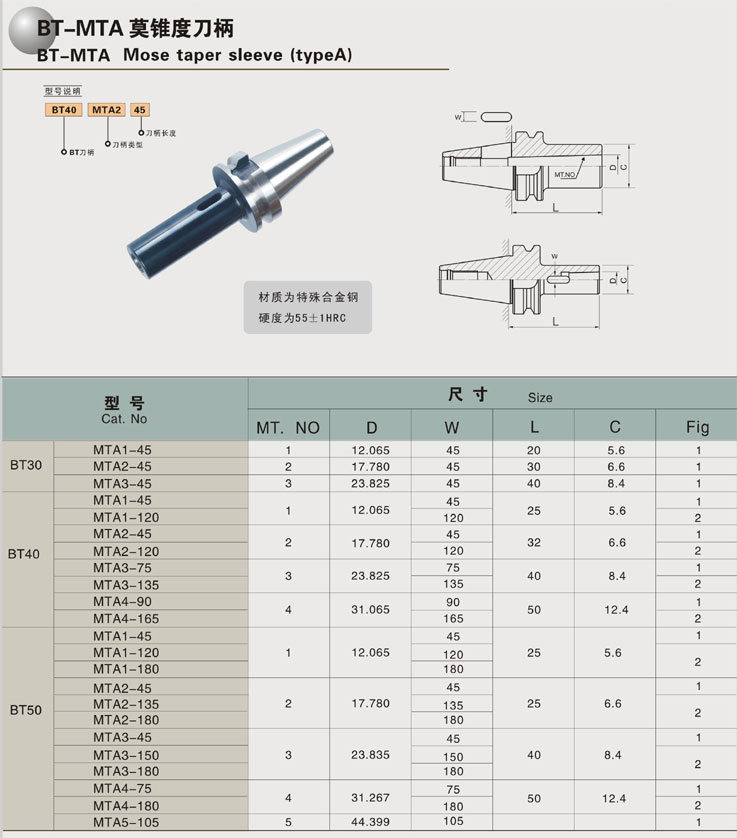 BT-MTA莫氏锥度刀柄