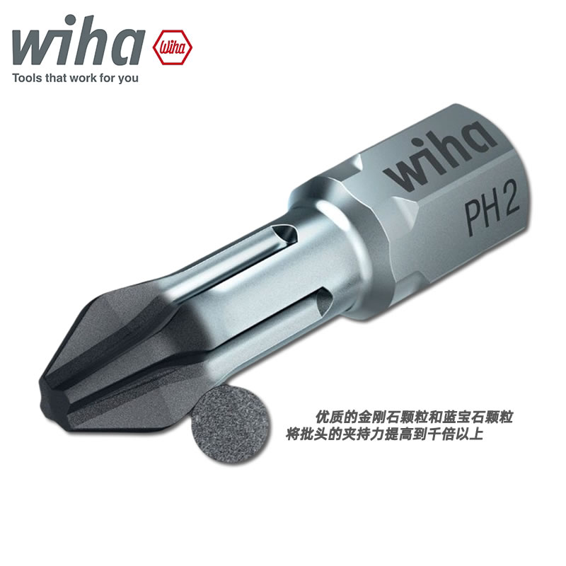 德国进口wiha威汉1/4十字米字电动冲击起子头PH2批嘴风批起子