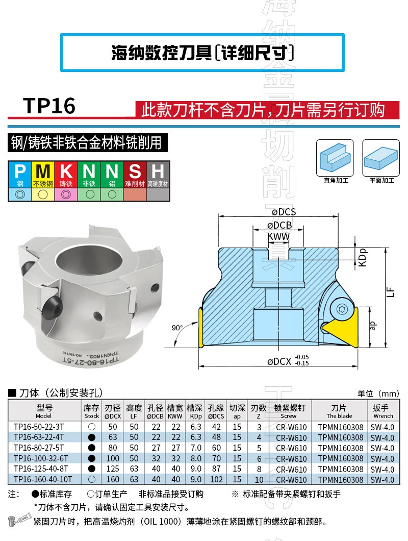 TP16-100-32-6T直角90度方肩数控平面铣刀盘