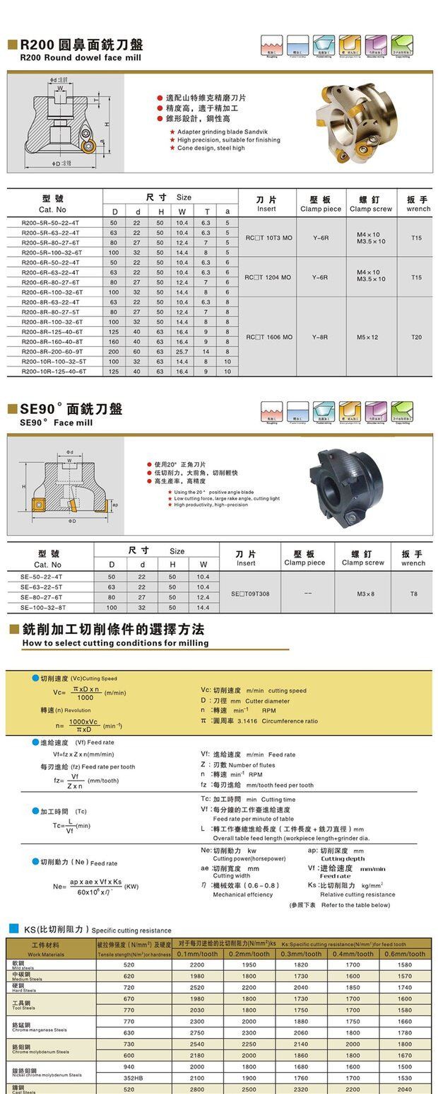 R200-8R R8圆鼻平面可转位铣刀盘