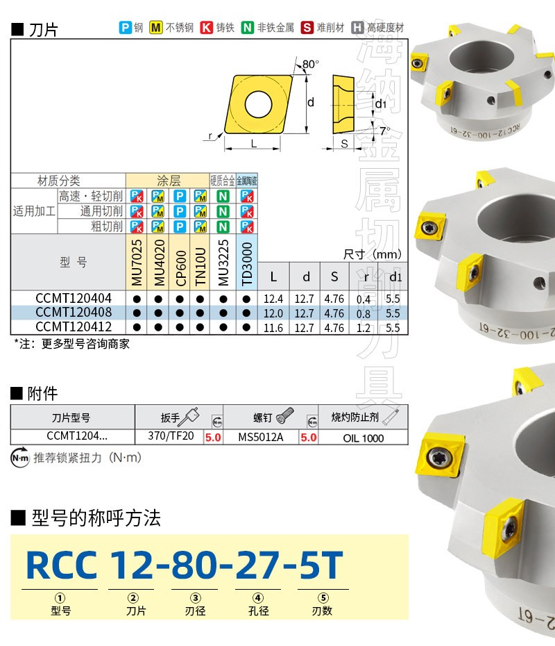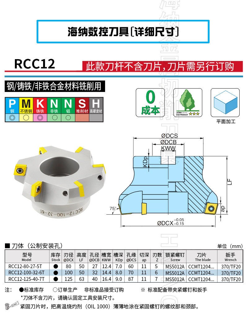 RCC12 75度平面铣刀盘