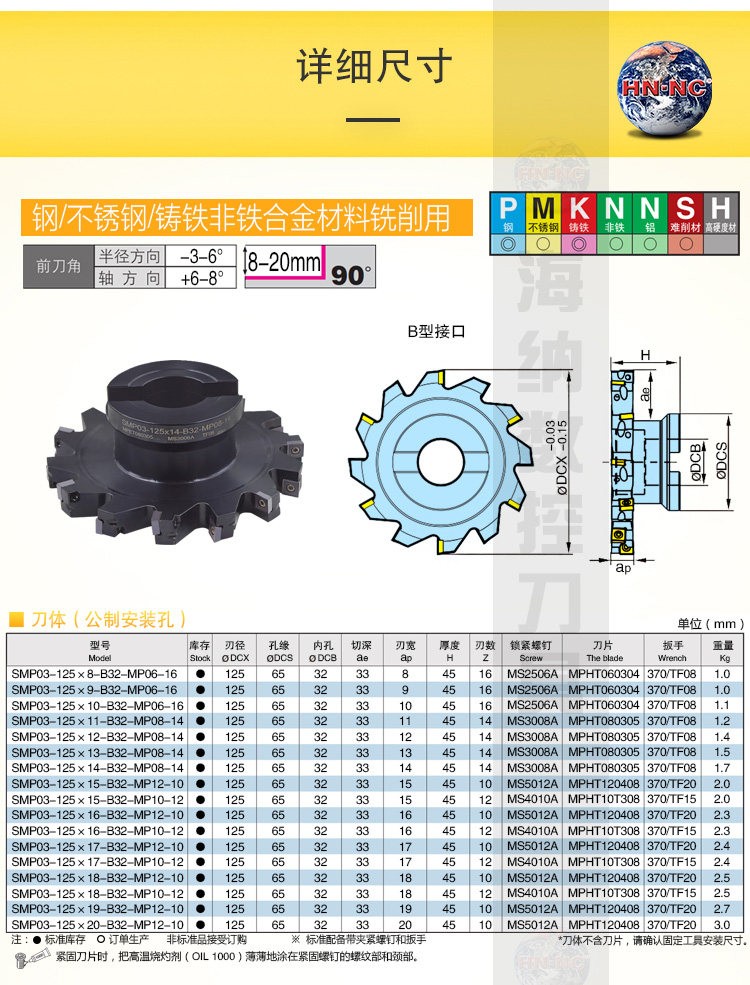 SMP03-125三面刃数控铣刀盘