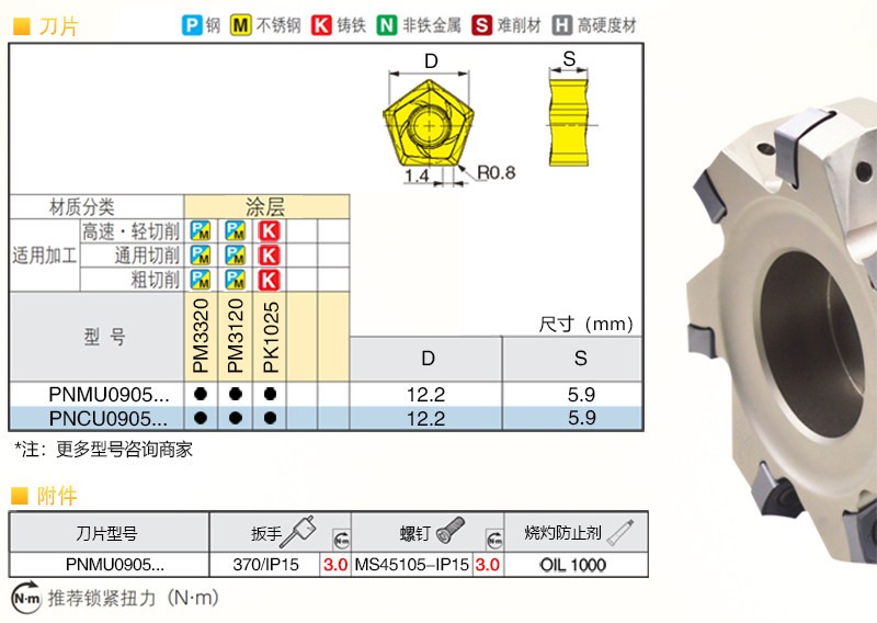 TEN09R 70度超硬平面快进给数控铣刀盘