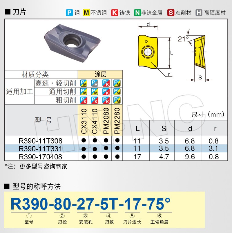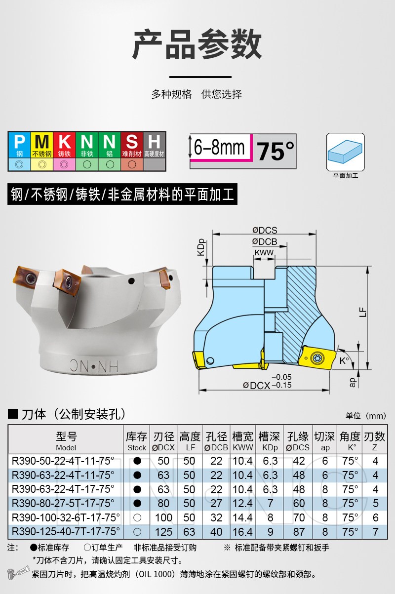 R390 75度平面数控铣刀盘