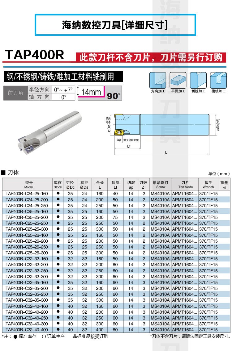 TAP400R R0.8直角方肩铣刀杆