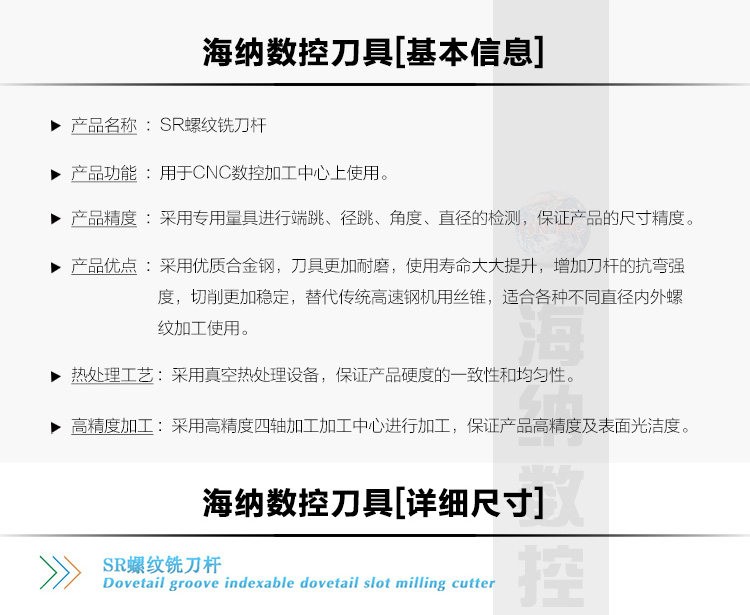 HSR加长内外螺纹梳齿螺纹铣刀杆