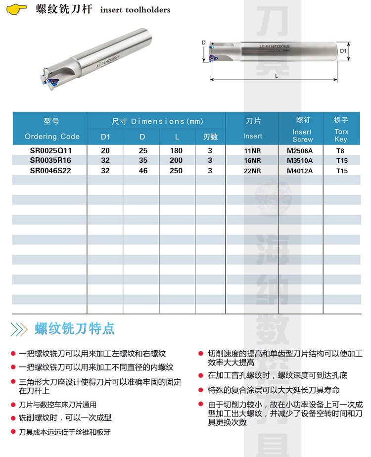 SR三刃单齿螺纹铣刀杆