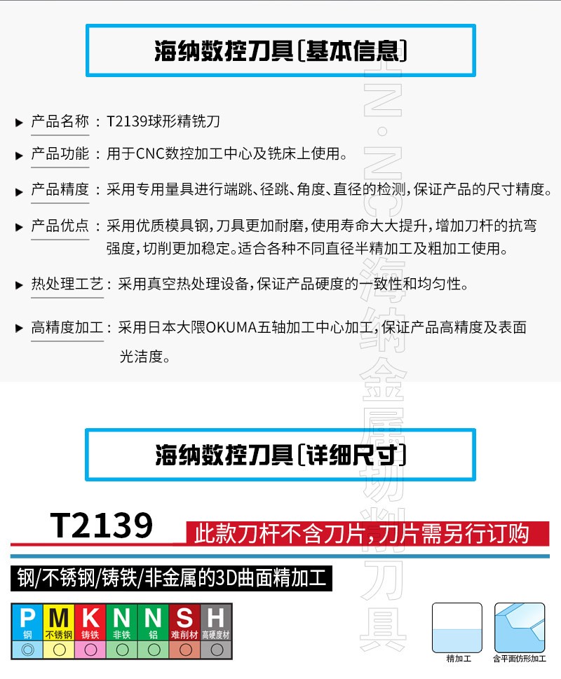 T2139加工中心球头精铣仿形铣刀杆