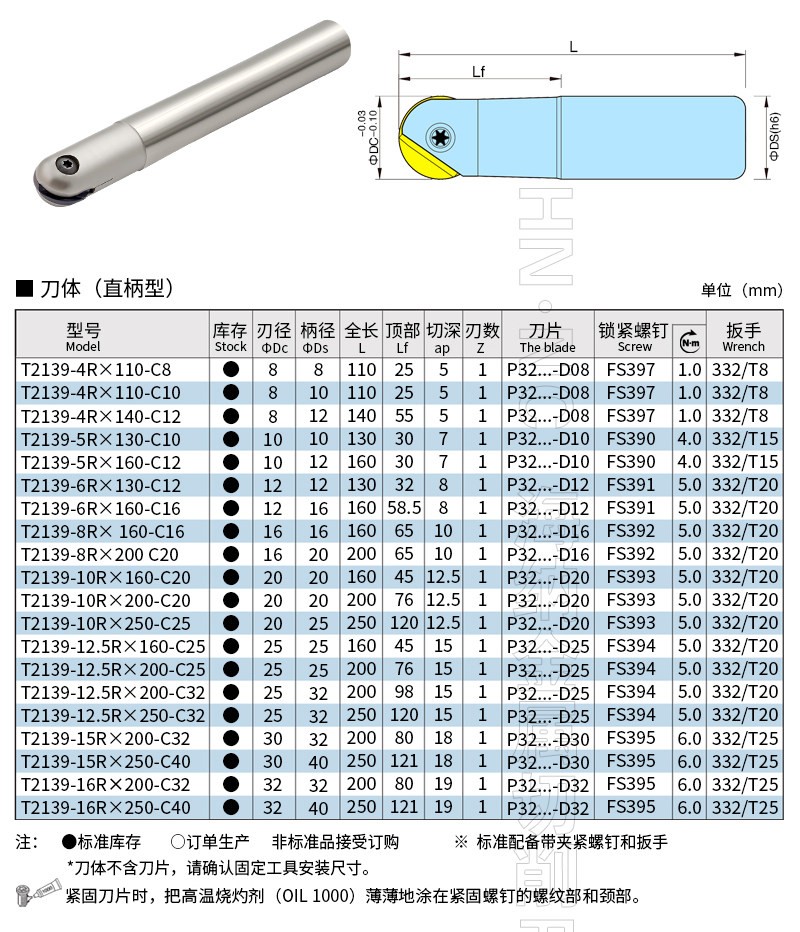 TRP R5圆鼻数控快进给铣刀杆