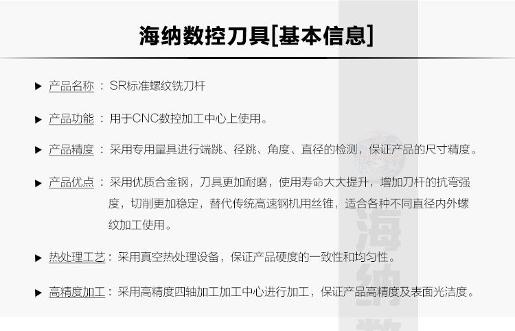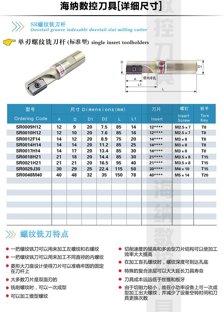 HSR加长内外螺纹梳齿螺纹铣刀杆