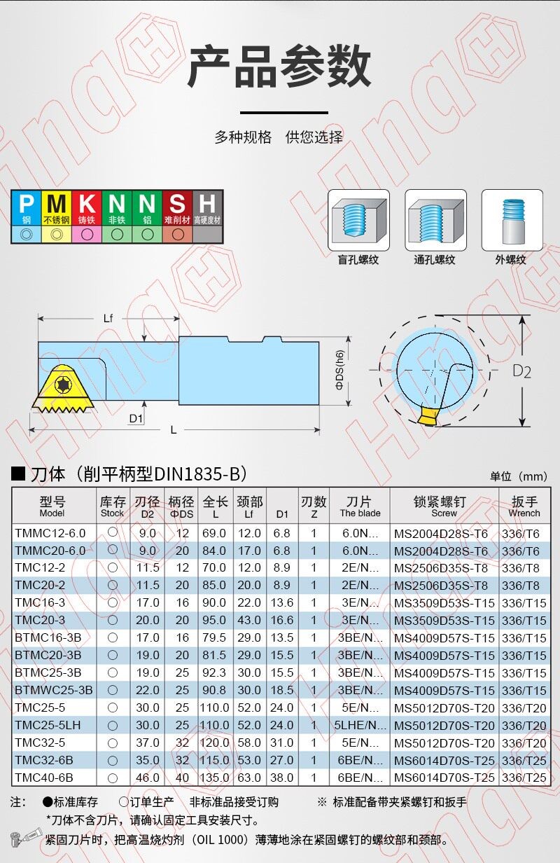 TM2C内冷双刃梳齿螺纹铣刀杆