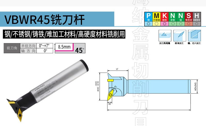 VBWR45度燕尾槽鸠尾槽倒角铣刀杆